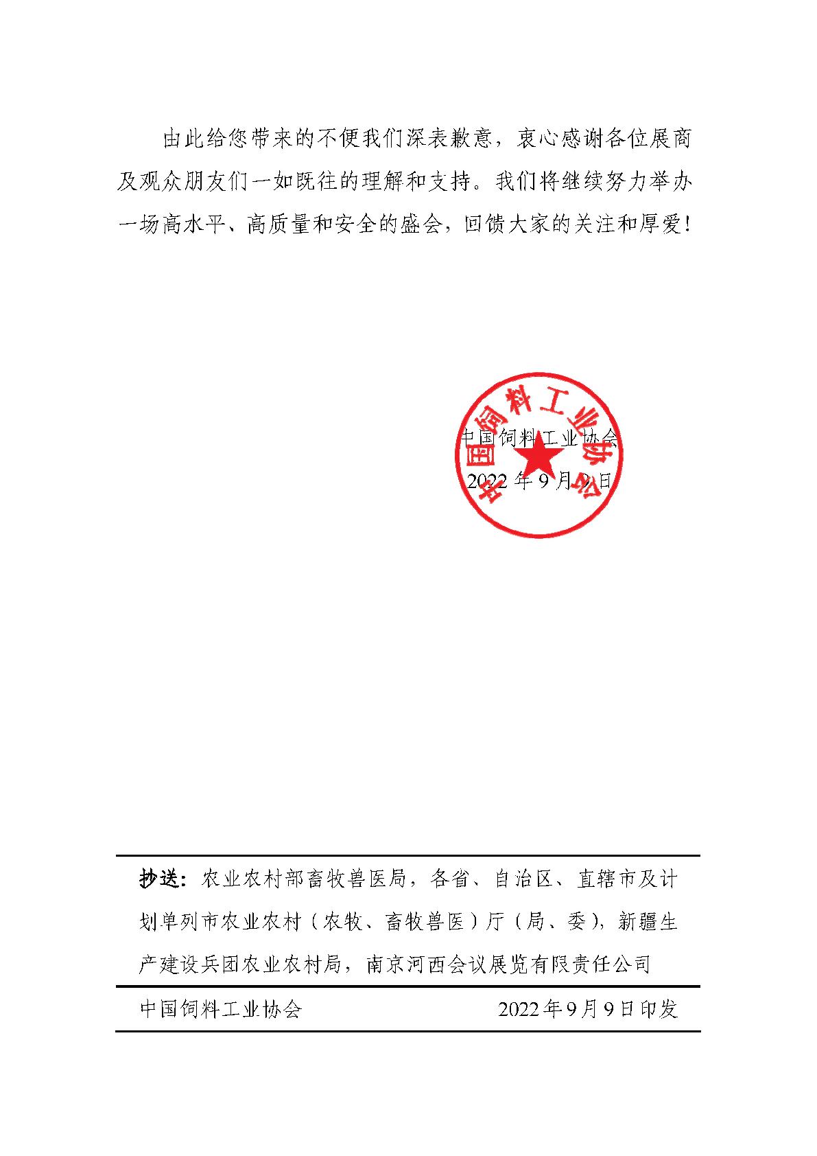 关于再次延期举办2022中国饲料工业博览会的紧急通知